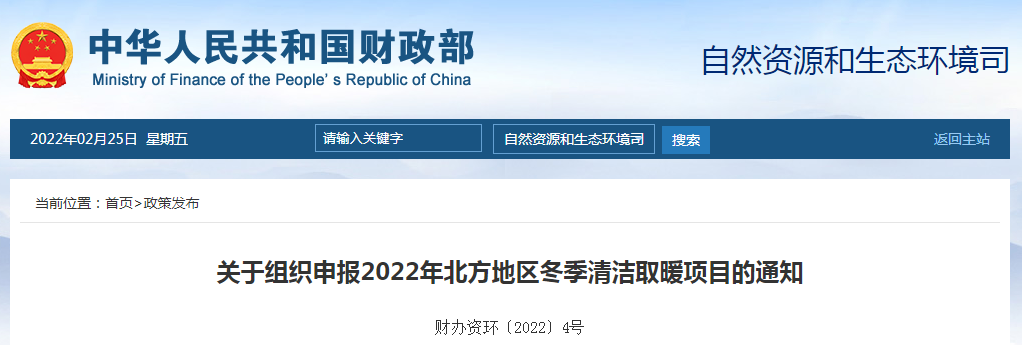 補貼政策2022年北方冬季清潔取暖項目申報來了:連續(xù)三年 獎補3-7億!