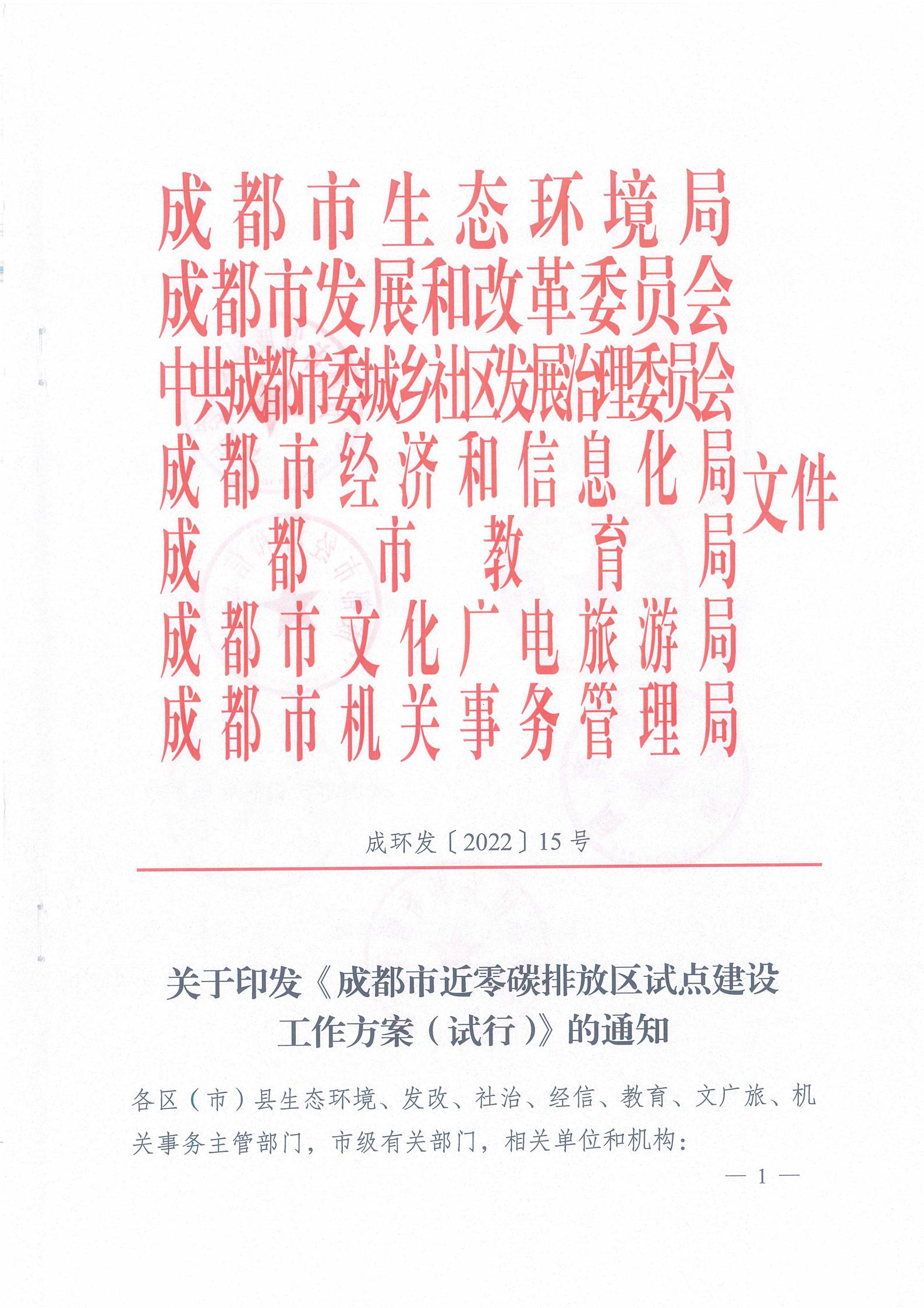 地大熱能地?zé)?多能互補網(wǎng)訊:為貫徹碳達(dá)峰碳中和目標(biāo)愿景,落實積極應(yīng)對氣候變化國家戰(zhàn)略,因地制宜探索近零碳發(fā)展模式,近日,成都市生態(tài)環(huán)境局會同市發(fā)改委、市委社治委、市經(jīng)信局、市教育局、市文廣旅局、市機關(guān)事務(wù)局聯(lián)合印發(fā)《成都市近零碳排放區(qū)試點建設(shè)工作方案(試行)》,并就2022年度試點建設(shè)申報工作作出安排部署。