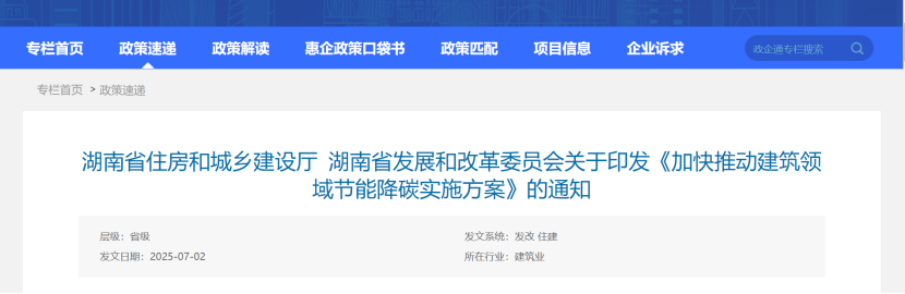 湖南省住房和城鄉(xiāng)建設(shè)廳 湖南省發(fā)展和改革委員會關(guān)于印發(fā)《加快推動建筑領(lǐng)域節(jié)能降碳實施方案》的通知