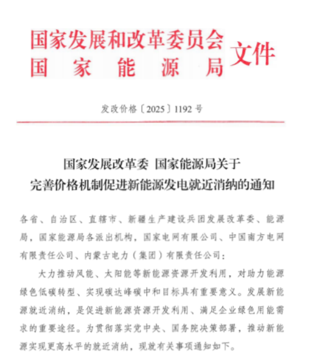 關(guān)于公開征求《關(guān)于貫徹發(fā)改價(jià)格〔2025〕1192號(hào)文件進(jìn)一步明確新能源就近消納價(jià)格政策有關(guān)事項(xiàng)的通知(征求意見函)》意見建議的公告