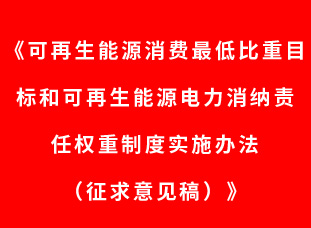 《可再生能源消費最低比重目標和可再生能源電力消納責任權(quán)重制度實施辦法(征求意見稿)》公開征求意見