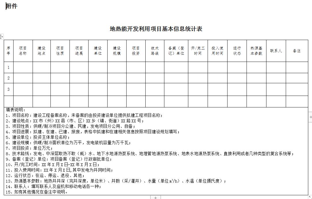 附件: 地熱能開發(fā)利用項(xiàng)目基本信息統(tǒng)計(jì)表