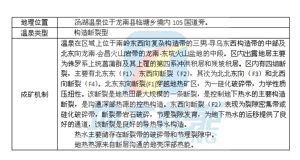 江西省龍南縣湯湖溫泉成礦機(jī)制![]() ![]() 江西省龍南縣湯湖溫泉區(qū)域地質(zhì)圖 |