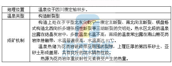 ![]() | 四川康定榆林溫泉風(fēng)景榆林溫泉在地下10米以內(nèi),水溫高達91℃,流出地面的溫度可達到50℃,流量達5L/s。水溫高,壓力大,而且含有多種元素和化合物。 |