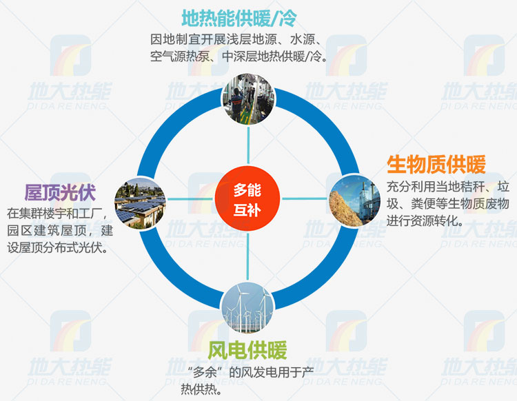 地?zé)?/span>+(風(fēng)能、太陽(yáng)能、氫能、儲(chǔ)能、水能、生物質(zhì)能等)新能源,根據(jù)因地制宜、多能互補(bǔ)實(shí)現(xiàn)能源綜合開(kāi)發(fā)利用。